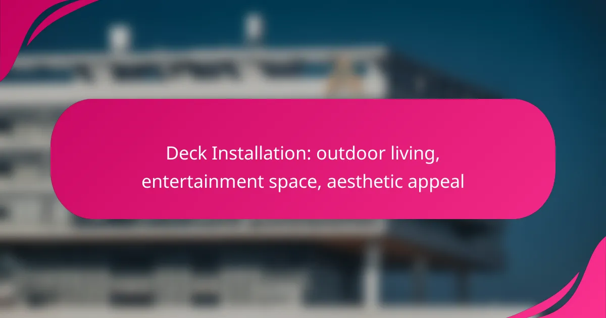Deck installation enhances outdoor living spaces, providing a perfect setting for entertainment and relaxation while boosting aesthetic appeal. With options like composite decking, pressure-treated wood, and vinyl, homeowners can select materials that align with their durability needs and design preferences. Understanding the associated costs and maintenance requirements is essential for creating a beautiful and functional outdoor area.