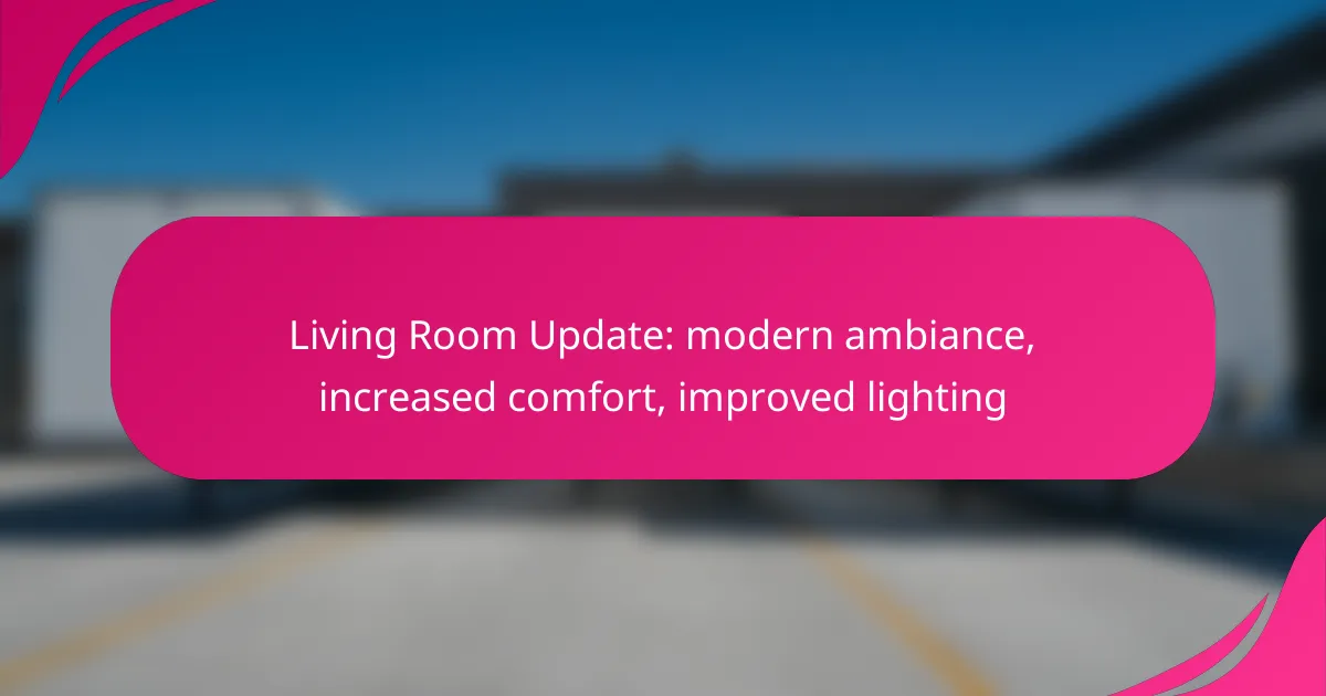 Key elements of a living room update include modernizing the ambiance, enhancing comfort, and improving lighting. These updates can transform the space into a more inviting and functional area for relaxation and socializing.